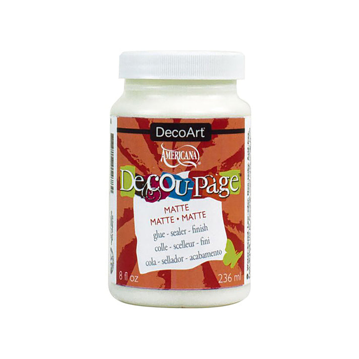 - Decou-Page Glue: DecoArt's Decou-Page Glue is Kayla's favorite. The matte finish ensures a zero-glare, protective finish on your completed project.