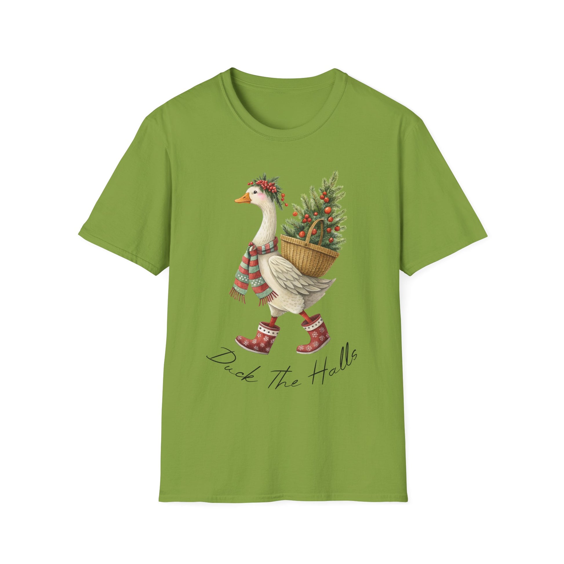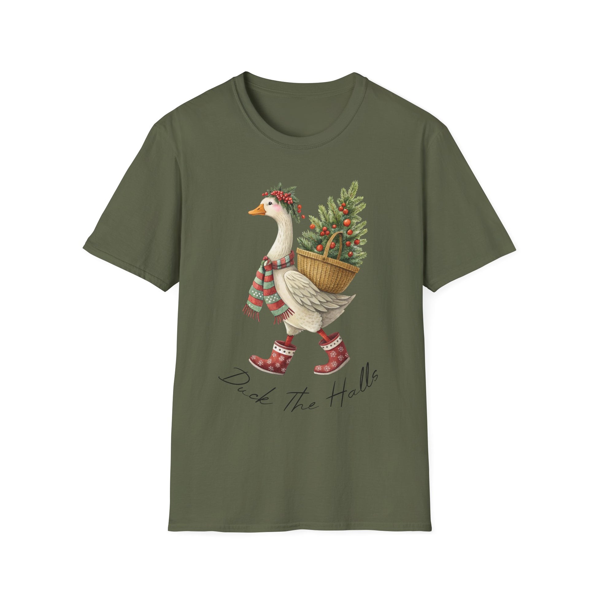 Add a dash of holiday cheer (and a whole lot of charm) with our Duck the Halls tee — a custom-designed Celebration Co. original! Featuring a festive duck dressed in a cozy scarf, snowflake boots, and a basket full of greenery, this merry design is sure to bring smiles all season long.