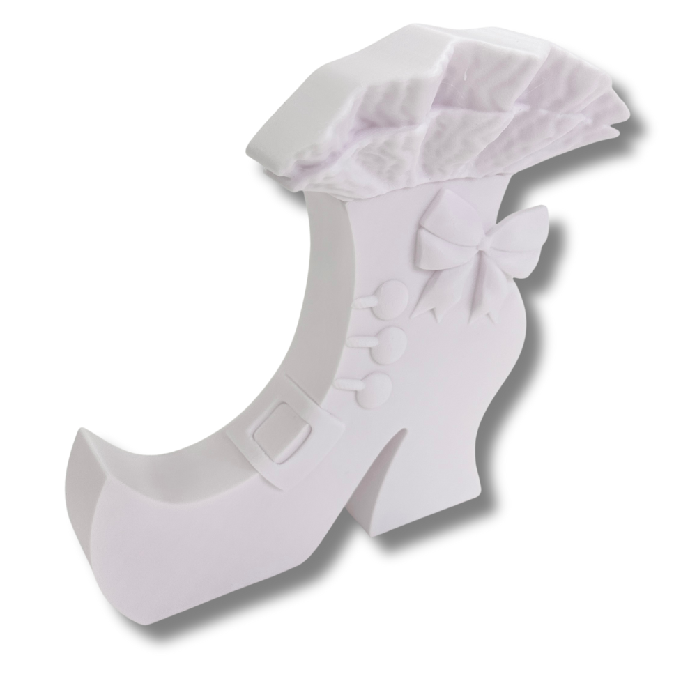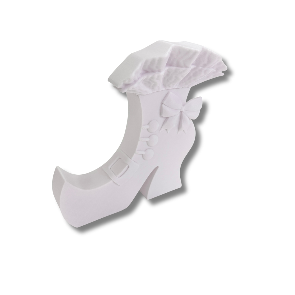 Add a touch of whimsical charm to your seasonal crafting with this Dimensional Witch Boot. Designed with layered pieces, this 3D boot can stand on its own, making it perfect for shelves, tiered trays, or table décor. The set includes a high-heeled boot base along with a ruffled cuff, bow, buckle, and buttons that you can decorate individually before assembling — no messy lines or paint bleeding onto the wrong piece.